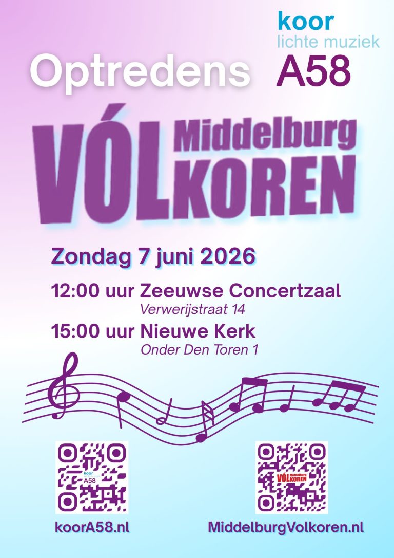 Elk jaar organiseert Koor A58 zelf concerten in Brabant en Zeeland.